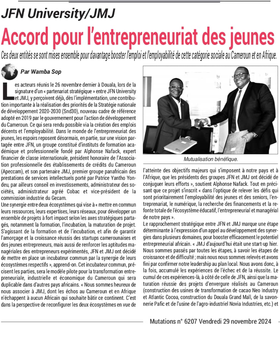 JFN University/JMJ : Accord pour l'entrepreneuriat des jeunes